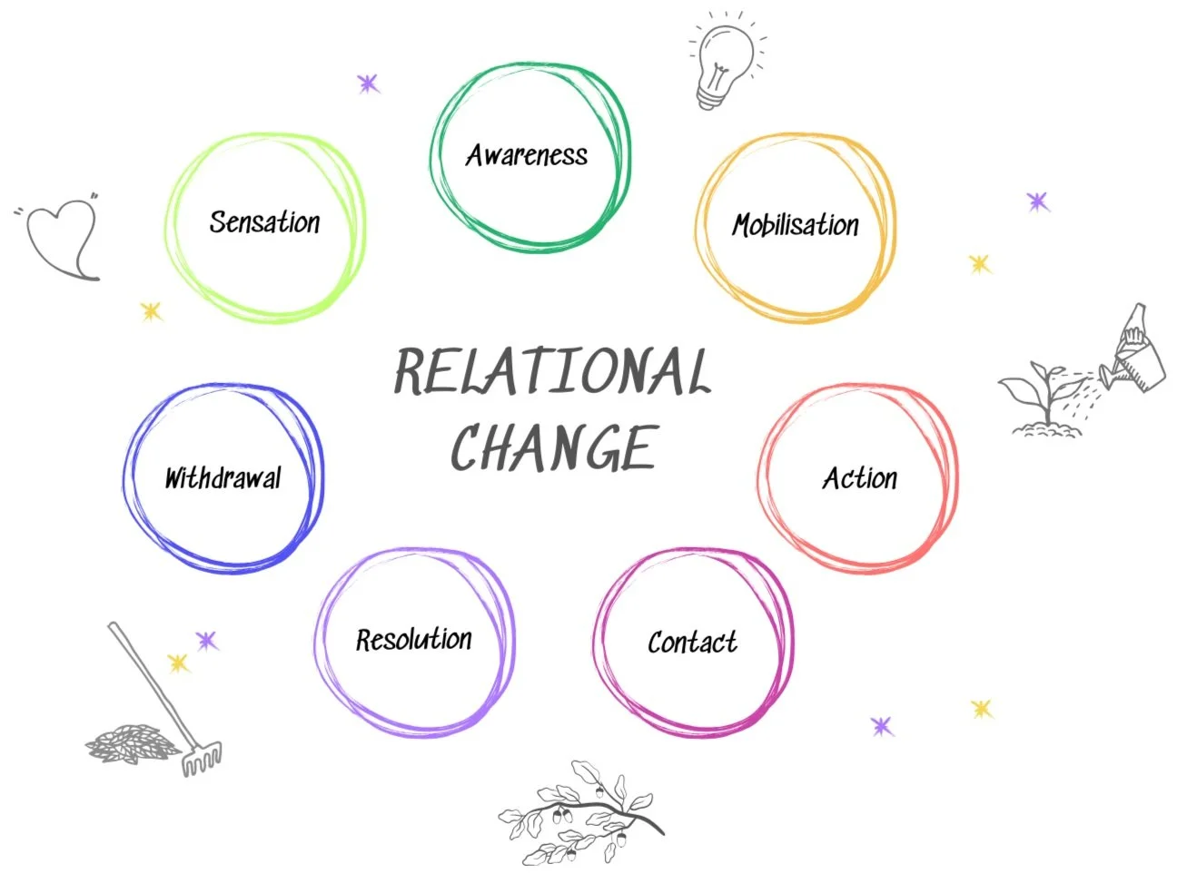 Relational coaching is guided by an explorative and holistic framework, the Gestalt Cycle of Experience.